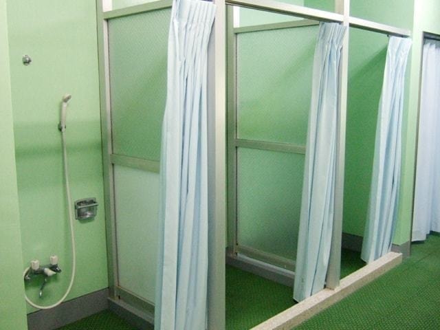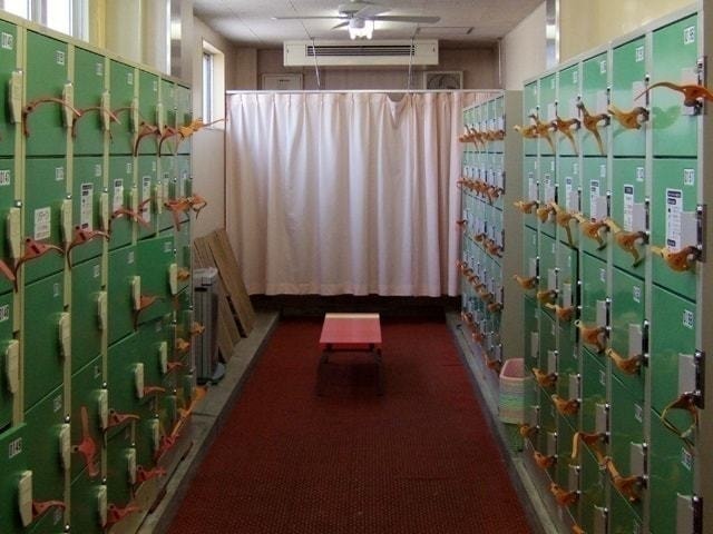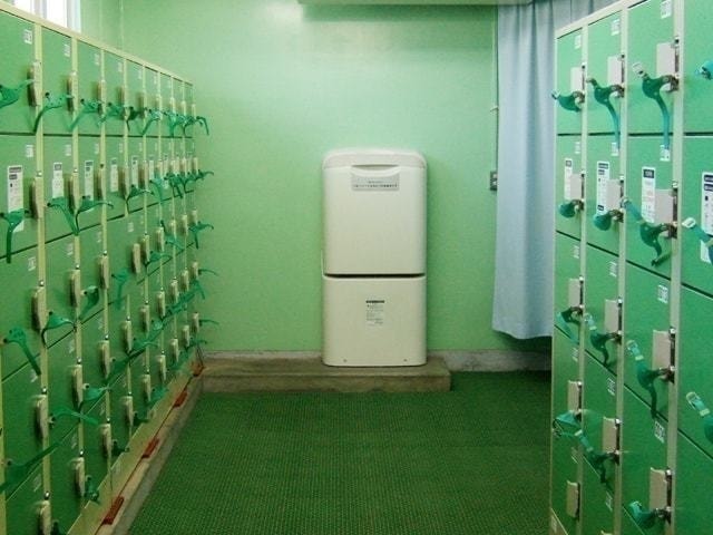 グリーンを基調とした清潔感ある更衣室です。 ロッカーは120人分あり、ベビーシートも完備しています。