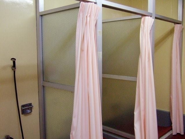 ピンクを基調とした清潔感ある更衣室です。 ロッカーは250人分あり、カーテンで仕切られた着替えスペースもあります。 ベビーシートも完備しています。